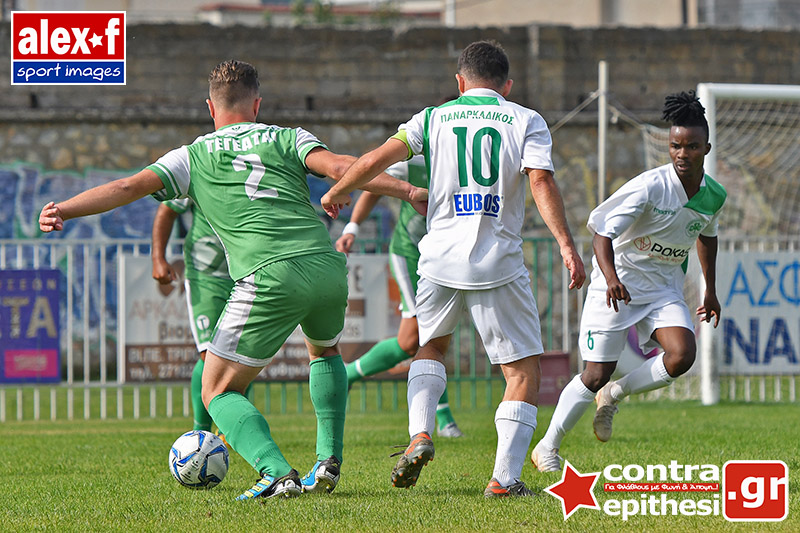 Ωστόσο η ομάδα του ΑΟ Τεγέας αποτέλεσε την ευχάριστη έκπληξη πιάνοντας πολύ καλή απόδοση στον αγωνιστικό χώρο. Έπαιξε πολύ καλή άμυνα σε μεγάλη διάρκεια του παιχνιδιού φτάνοντας ακόμη και στο τελευταίο 20λεπτο να πιέζει ψηλά τον Παναρκαδικό στην προσπάθειά να σκοράρει. Κράτησε το 0-0 για 17 λεπτά, απείλησε με κάποιες επιθετικές προσπάθειες και με λίγο περισσότερο καθαρό μυαλό και συγκέντρωση θα μπορούσε να γίνει ακόμη πιο απειλητική στο ματς. Ο Πανρκαδικός ειδικά στην επανάληψη είχε φάσεις για να φτάσει και σε άλλα τέρματα κάτι που δεν συνέβη, βάζοντας σε μια αγχωτική διαδικασία μέχρι το τέλος της αναμέτρησης.